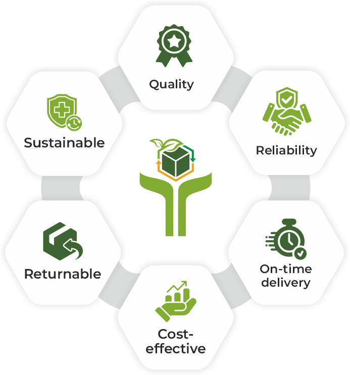 Sustainability Commitment: Sustainability is at the heart of everything we do. We design returnable, reusable, and eco-conscious packaging solutions that reduce environmental impact without compromising performance or cost-effectiveness.